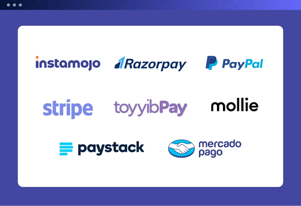 Eight different integrations are available. Of course you have Paypal and Stripe. Also: Instamojo, Mollie and MORE!