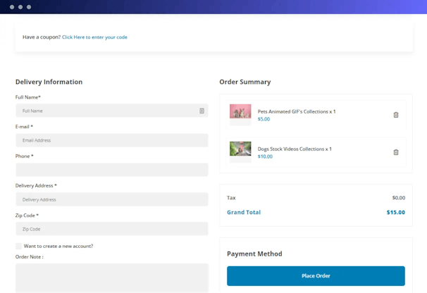 - Cart and Checkout System to Buy